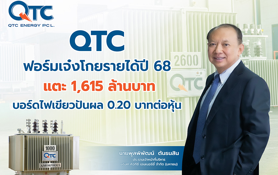 QTC ฟอร์มเจ๋ง โกยรายได้ปี 68 แตะ 1,615 ล้านบาท บอร์ดไฟเขียวปันผล 0.20 บาทต่อหุ้น บมจ.คิวทีซี เอนเนอร์ยี่ (QTC) ประกาศงบปี 2568 รายได้ 1,615 ล้านบาท รับดีมานด์การใช้พลังงานสะอาดพุ่ง หนุน Backlog ณ สิ้นเดือนมกราคม 69 แตะ 1,000 ล้านบาท ล่าสุดบอร์ดไฟเขียวจ่ายปันผล 0.20 บาท จ่อ XD วันที่ 10 เมษายน 2569 พร้อมเดินหน้ายกระดับองค์กรสู่ Green Energy Solution ด้วยนวัตกรรม IoT หม้อแปลงอัจฉริยะ มั่นใจปั๊มรายได้ปี 2569 โตก้าวกระโดด แตะ 2,000 ล้านบาท นายพูลพิพัฒน์ ตันธนสิน ประธานเจ้าหน้าที่บริหาร บริษัท [...]