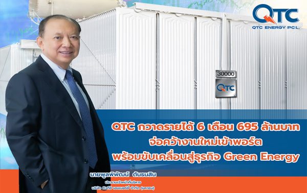 QTC กวาดรายได้ 6 เดือน 695 ล้านบาท จ่อคว้างานใหม่เข้าพอร์ต พร้อมขับเคลื่อนสู่ธุรกิจ Green Energy บมจ.คิวทีซี เอนเนอร์ยี่ (QTC) โชว์งบ 6 เดือนแรก กวาดรายได้รวม 695 ล้านบาท เพิ่มขึ้น 27% (YoY) รับดีมานด์การใช้หม้อแปลงจากการเปิดโรงไฟฟ้าพลังงานหมุนเวียนเพิ่ม ส่วนธุรกิจโซลาร์เติบโต 22% เมื่อเทียบกับช่วงเดียวกันของปีก่อน ด้าน CEO “พูลพิพัฒน์ ตันธนสิน” ส่งสัญญาณครึ่งปีหลังตุน Backlog ใหม่เข้าพอร์ต 500-600 ล้านบาท พร้อมเดินหน้าก้าวสู่ปีที่ 30 สู่การขับเคลื่อนธุรกิจ Green Energy ตอกย้ำความมุ่งมั่นด้าน ESG